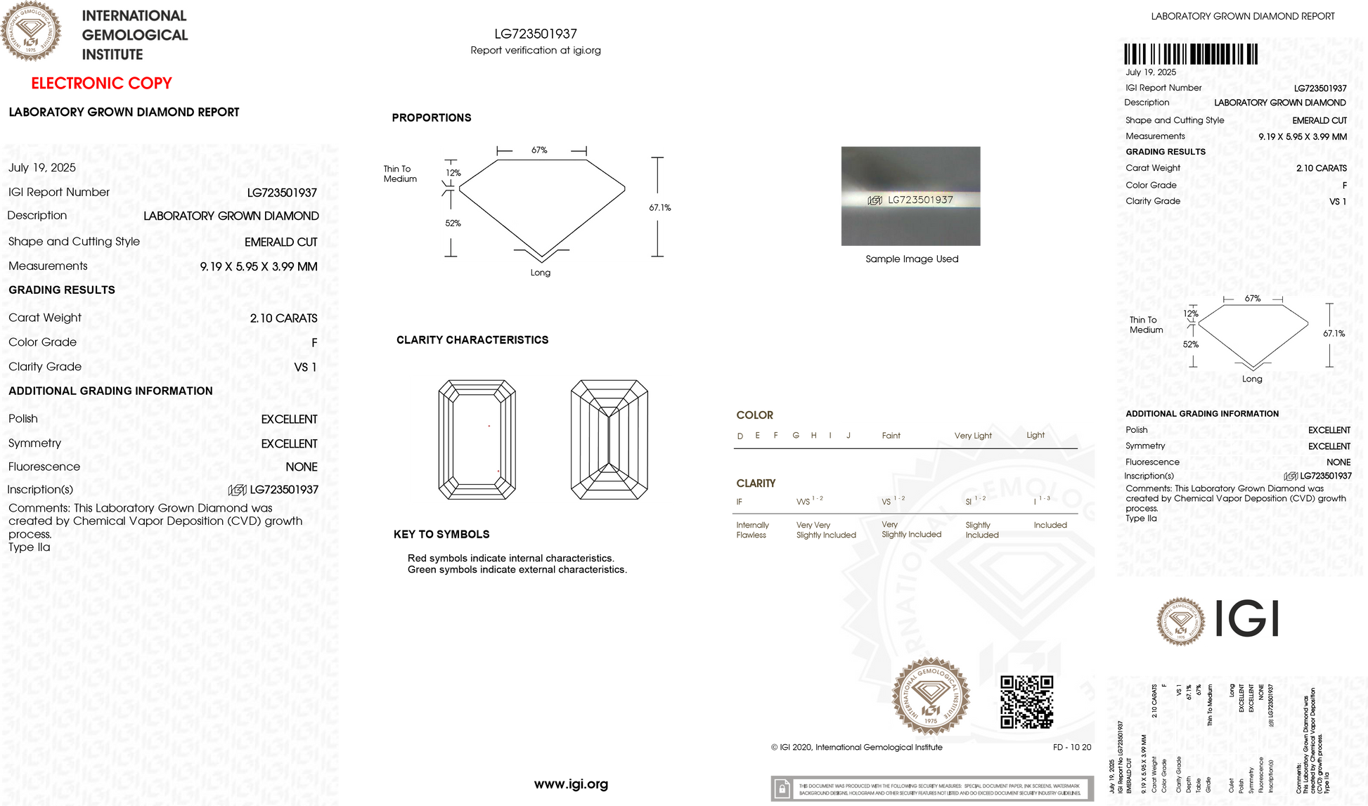 2.10ct Emerald Cut Lab Diamond – F VS1