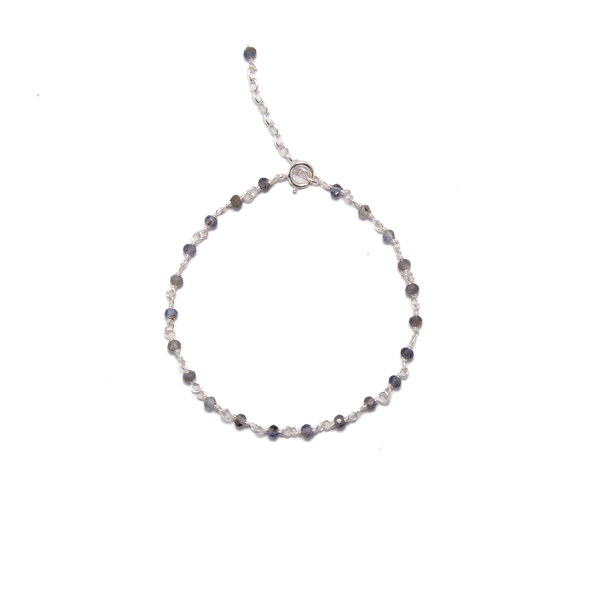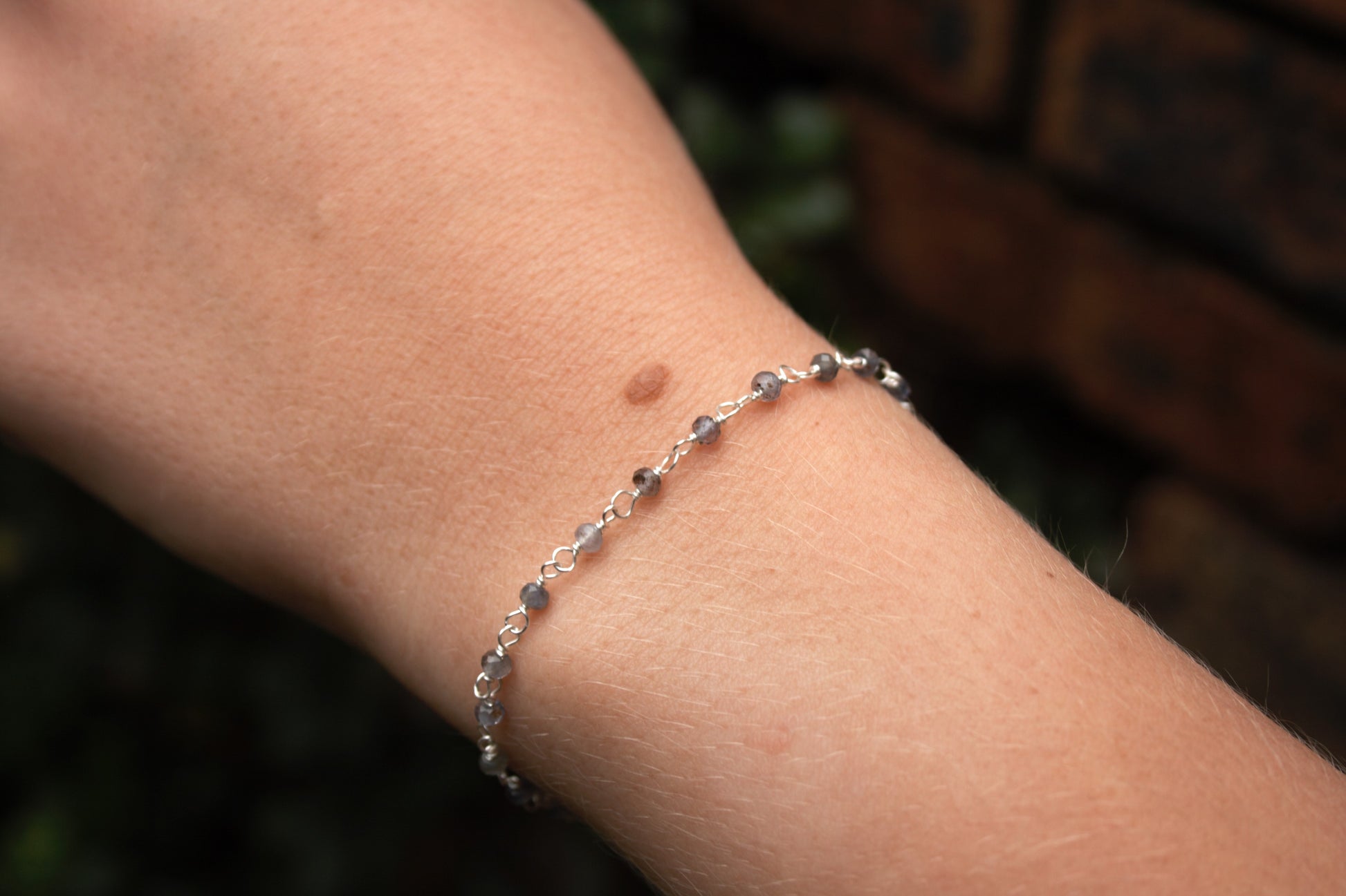 Natural Iolite Beads on a 20cm Silver Bracelet