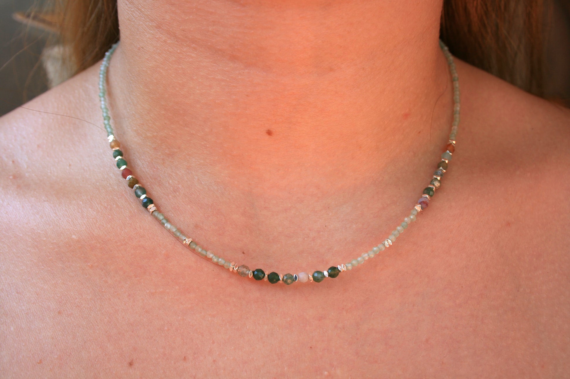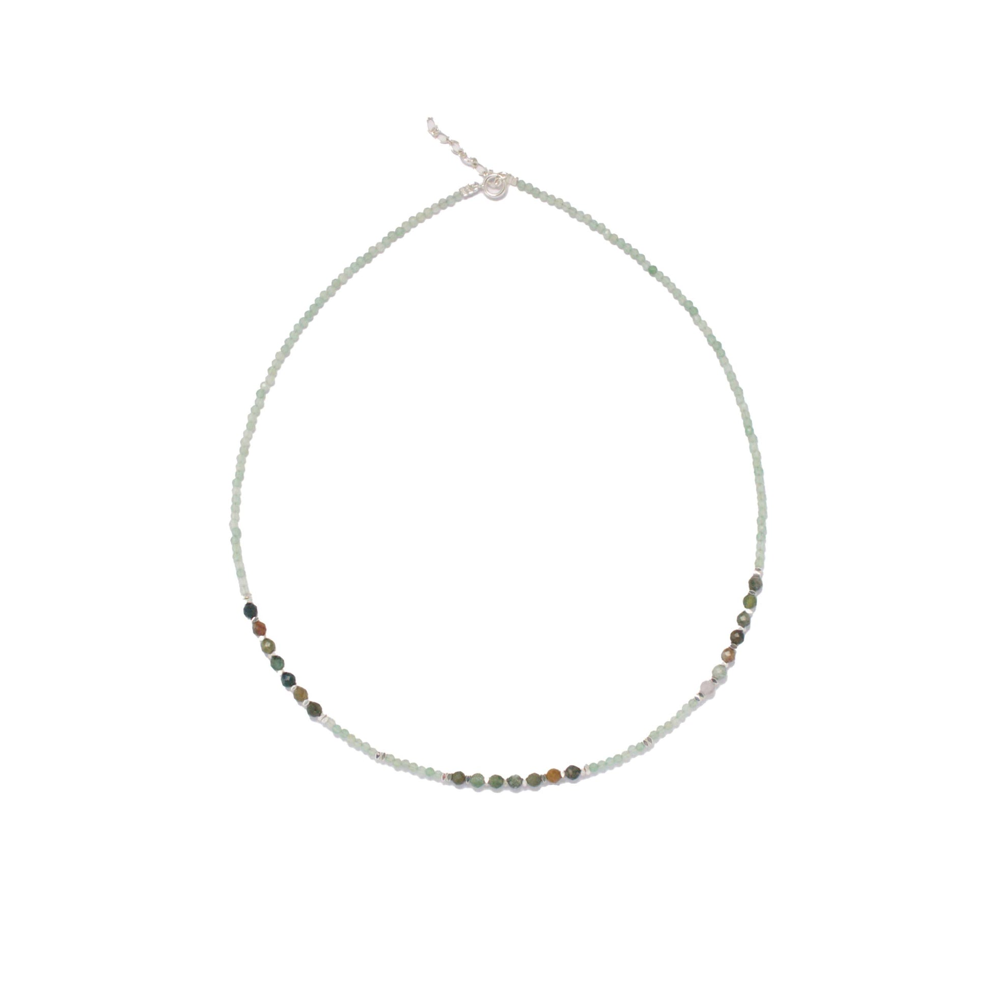 Natural Tree Agate & Quartz Beads on a 44cm Silver Necklace