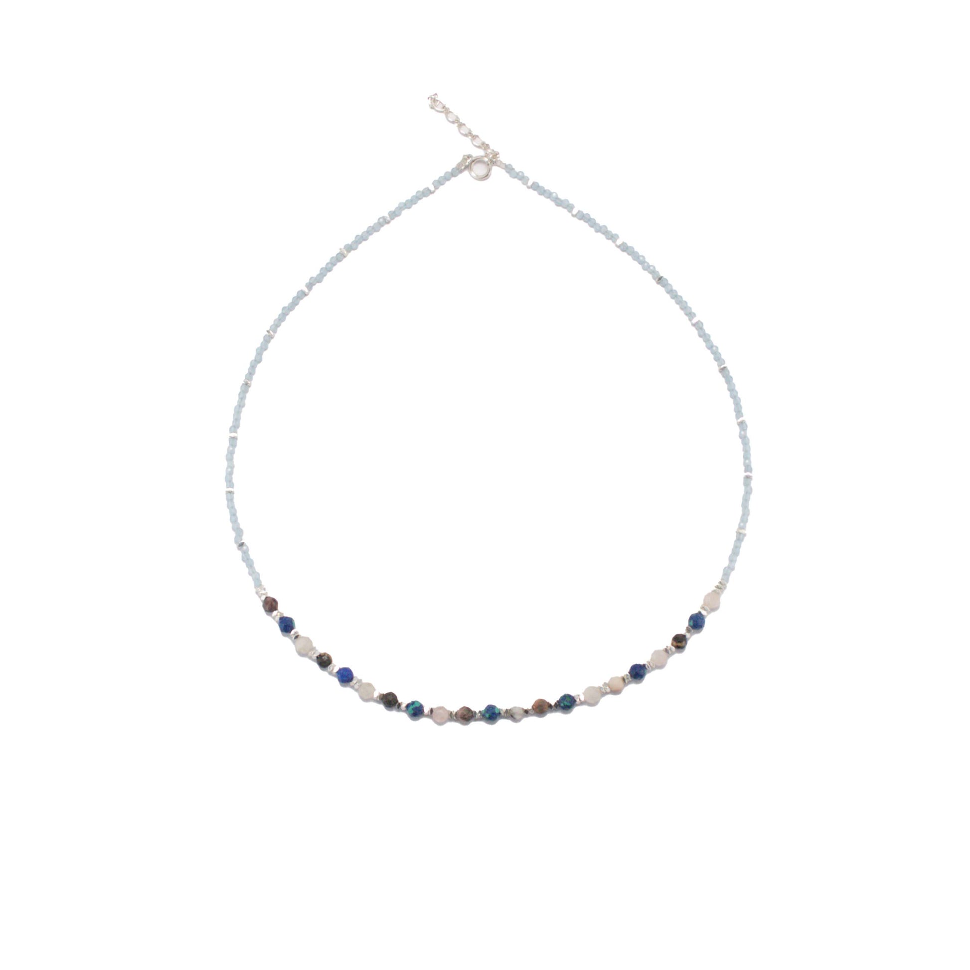 44cm Silver & Aquamarine/Tourmaline/Azurite/Malachite/Quartz Necklace