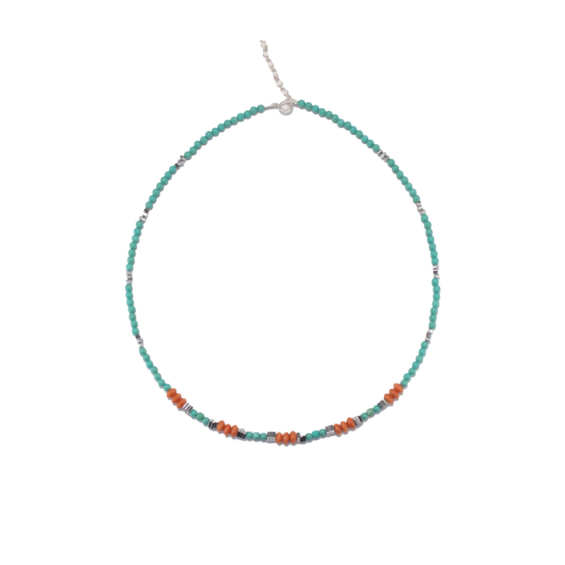 44cm Silver & Turquoise/Coral/Pyrite Necklace