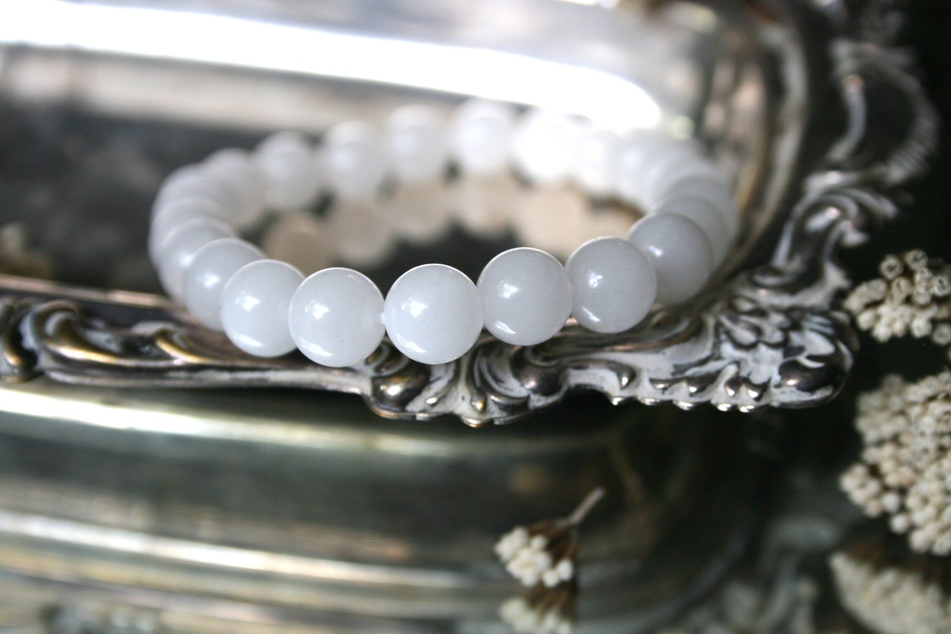 Gorgeous White Jade Round Bead Bracelet.